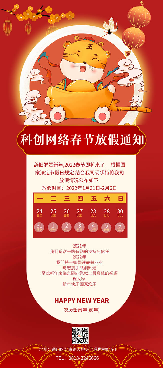 辭舊歲賀新年,2024春節即將來了, 根據國家法定節假日規定 結合我司現狀特將我司放假情況公布如下:放假時間: 2024年2月8日-2月18日至此新年來臨之際向您獻上最真摯的祝福 ...